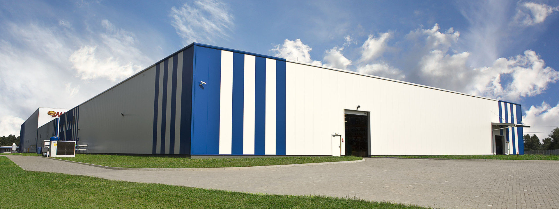 Concept, full-discipline design and comprehensive construction of a warehouse and production hall with an internal social and office area. Hall featuring a steel structure, social–office area built using traditional brick technology. Facility housing featuring the sandwich panel technology and a roof comprising sheet metal / insulation / PVC foil; development and hardening of the area around the hall and installation of the flooring and all utility systems.