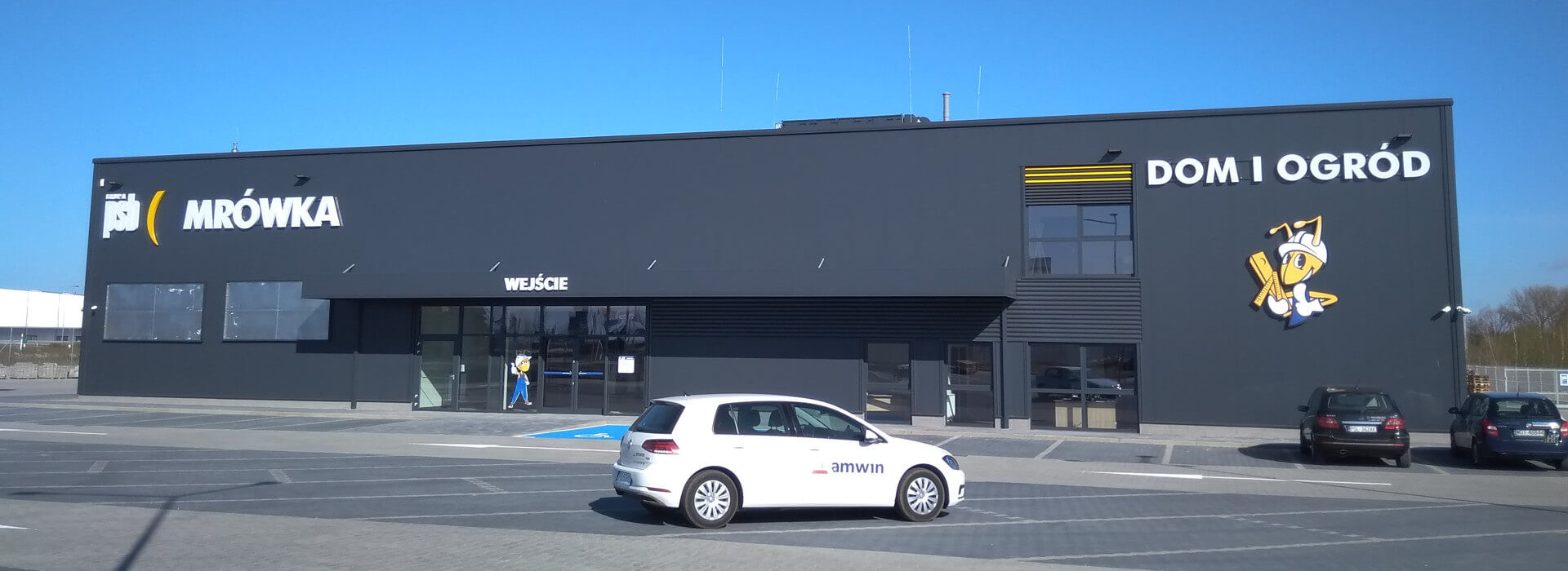 Realizacja obiektu obejmowała stworzenie pełnobranżowego projektu i kompleksowe wykonanie hali handlowej z dwukondygnacyjną częścią socjalno-biurową o powierzchni zabudowy ok. 2000 m2. Hala została wykonana w technologii mieszanej. Obudowa ścian zewnętrznych hali zmontowana została z płyt warstwowych z wypełnieniem z pianki PIR, obudowa dachu w technologii: blacha trapezowa/izolacja termiczna/folia dachowa PVC. Do zakresu prac zespołu Amwin należało m.in. kompleksowe wykonanie instalacji elektrycznej, dostawa i montaż instalacji sanitarnych oraz zagospodarowanie terenu i wszystkie inne prace niezbędne do uzyskania pozwolenia na użytkowanie. Projekt uwzględnia możliwość dalszej rozbudowy.